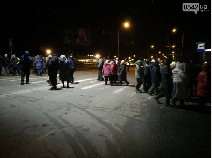 Вчера вечером протестующие перекрыли дорогу в районе "Эпицентра". Они переходили по пешеходному переходу, не давая транспорту проехать. Сумчане обещают продолжать протест до тех пор, пока в дома не вернут подачу газа.