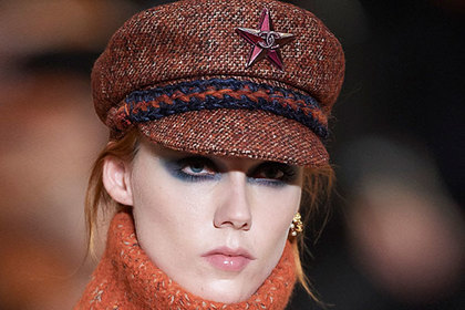 Среди прочего была и "комиссарская" фуражка с красной звездой. Она выполнена из твида кирпичного цвета.