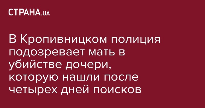 В Кропивницком полиция подозревает мать в убийстве дочери, которую нашли после четырех дней поисков