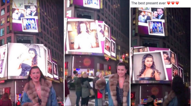 Напомним, что стоимость подарка получилась не менее $3000. Чтобы разместить фото на бигборде Таймс-сквер, надо выложить минимум $1500. Несколько экранов со слайд-шоу может стоить около $3 тысяч.