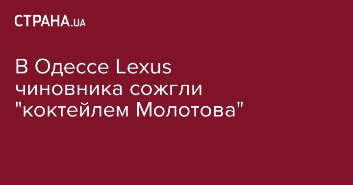 В Одессе двое неизвестных бросили "коктейль Молотова" в Lexus начальника управления земельных ресурсов Одесского горсовета Дмитрия Кота. Об этом сообщает УНИАН со ссылкой на представителя Главного управления Нацполиции в Одесской области.