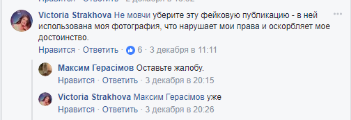 Страхова в комментариях потребовала убрать "эту фейковую публикацию".