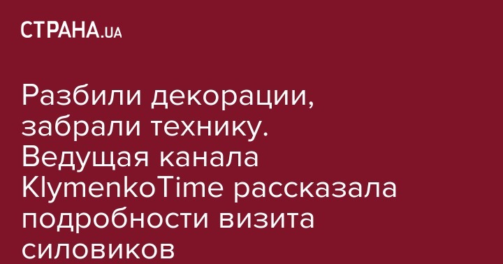 Разбили декорации, забрали технику. Ведущая канала KlymenkoTime рассказала подробности визита силовиков