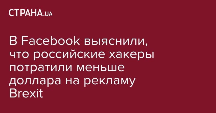 В Facebook заявили, что проведенное расследование попыток России повлиять на результаты референдума о Brexit'e смогло обнаружить в социальной сети только три тематических российских рекламы.