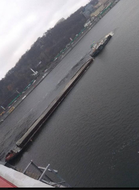 Баржа, полностью нагруженная песком, ударила в каменную насыпь вокруг опоры. Хорошо, что удар был не очень сильный", - написал Гриценко 15 декабря.