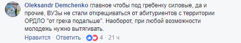 В комментариях к посту пользователи отмечают: "Главное чтобы под гребенку силовые, да и прочие, ВУЗы не стали открещиваться от абитуриентов с территории ОРДЛО "от греха подальше". Наоборот, при любой возможности молодежь нужно вытягивать".