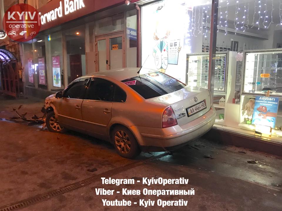 "Двигались оба в попутном направлении. Когда автомобили почти сравнялись, водитель Chevrolet резко повернул руль в сторону Volkswagen. Произошло столкновение от которого обоих забросило на тротуар. Затем Volkswagen въехал в витрину магазина и залетел на бетонные лестницы, а Chevrolet - в дерево. Следует заметить, что очень повезло и в этот момент на тротуаре и на остановке (около которой Chevrolet проехал в считанных сантиметрах) никого не было", - говорится в сообщении.