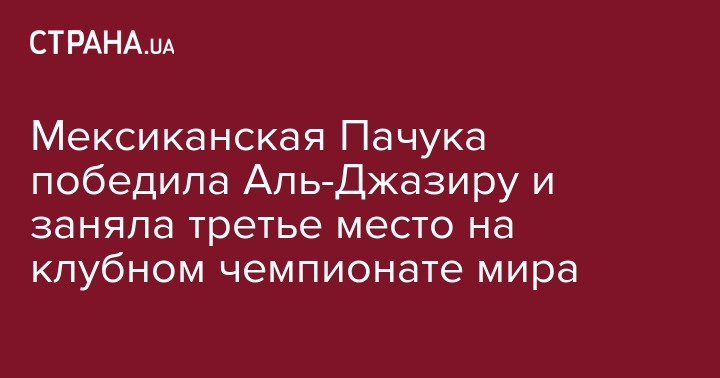 Старейший футбольный клуб Мексики (был основан в 1901 году - Прим.Ред.) Пачука, сегодня, 16 декабря, разгромил Аль-Джазиру в матче за третье место на клубном чемпионате мира - 2017. Встреча прошла в Абу-Даби на стадионе "Шейх Зайед" и завершилась со счетом 4 - 1 в пользу мексиканцев.