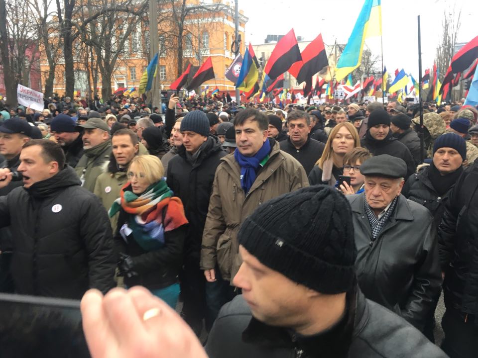 Сегодня, 17 декабря, вышедший из СИЗО Михаил Саакашвили возглавил марш за импичмент. Он прошел от парка Шевченко до Майдана Независимости, после чего отправился в Октябрьский дворец.