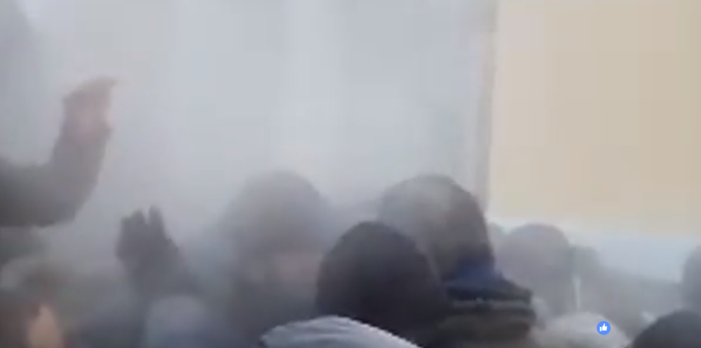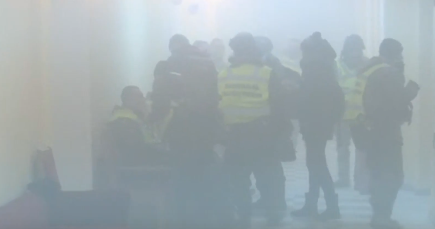 15:50 Прозвучал какой-то взрыв. Нацгвардеец говорит, что газ распыляли в помещение с улицы.