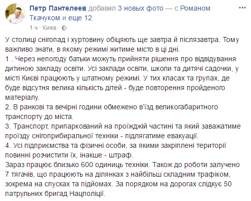 Об этом  написал заместитель мэра Кличко Петр Пантелеев на странице в Facebook.