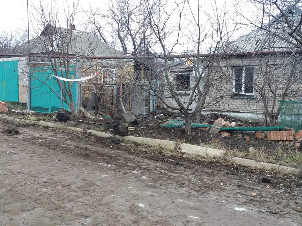 В штабе АТО опубликовали фото последствий обстрела поселка Новолуганское под Светлодарском из "Града". Кадры появились на странице штаба в Facebook.