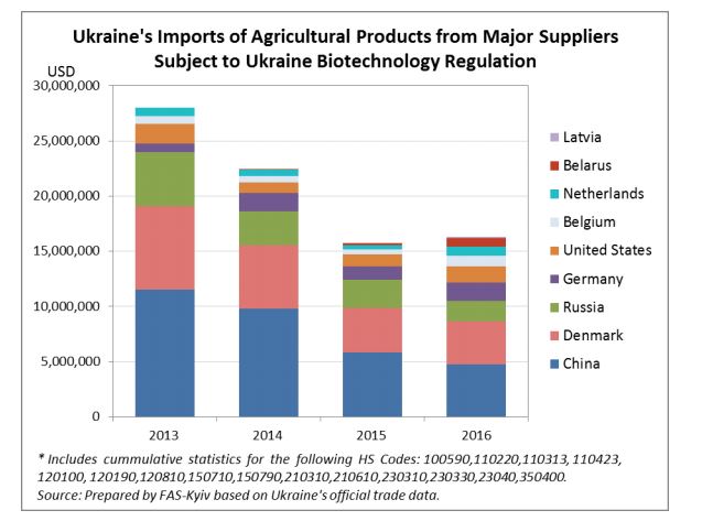 Украинский импорт сельскохозяйственной продукции из основных поставок, подлежащих регулированию биотехнологии Украины