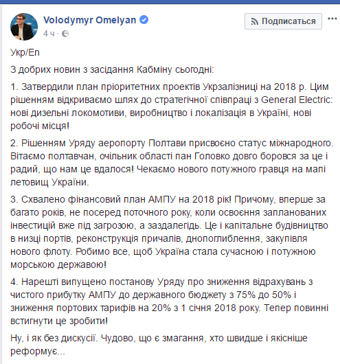 Фото:  facebook.com/volodymyr.omelyan/