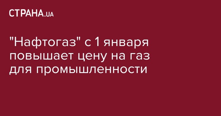 Сообщается, что максимальные цены на природный газ для промпотребителей с 1 января будут повышены на 8,2% – до 10732,8 грн с 9918 грн за тыс. кубометров. Как отметили в компании, ценовые предложения Национальной акционерной компании "Нафтогаз" дифференцированные в зависимости от объемов закупки, условий оплаты и состояния предыдущих расчетов.
