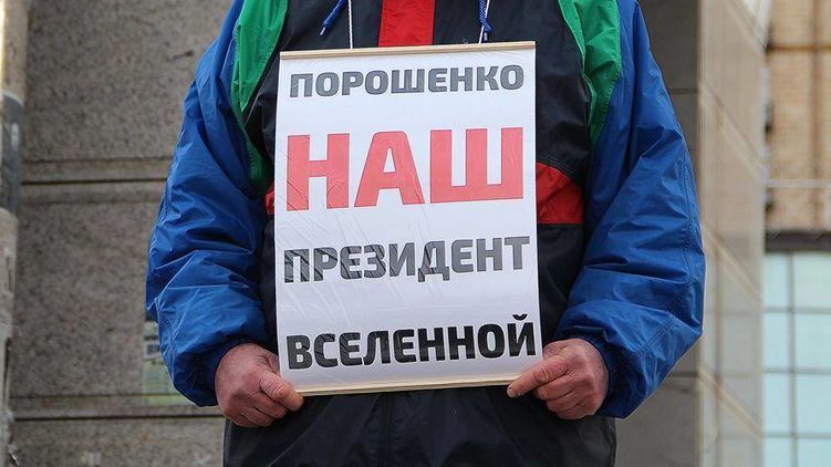 Особенное умиление в соцсетях вызвало фото мужчины с плакатом "Порошенко - наш президент Вселенной".