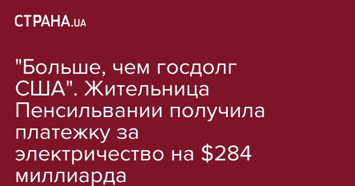 58-летняя американка Мэри Хоромански, которая проживает в штате Пенсильвания, получила счет за электричество на рекордную сумму - свыше 284 миллиарда долларов. Об этом передает Fox News.