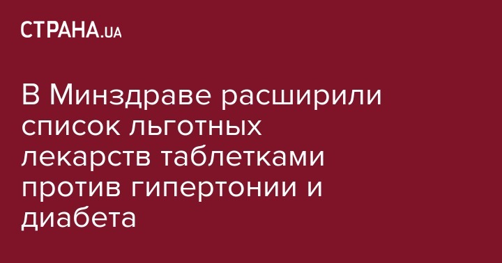 Чиновники дополнили список льготных лекарств минимум 10 торговыми названиями бесплатных препаратов, 2 действующими веществами для лечения сердечно-сосудистых заболеваний и диабета 2 типа — "Лозартан" и "Глибенкламид".