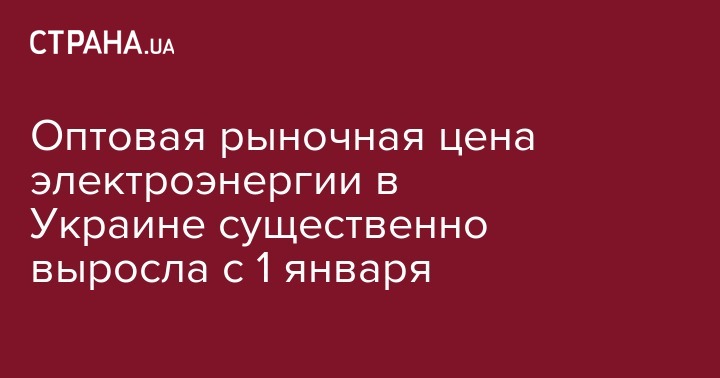 Оптовая рыночная цена электроэнергии в Украине существенно выросла с 1 января