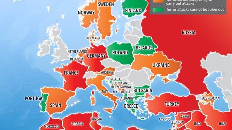 "После Турции, Украины и Франции следующими среди "опасных" стран стали Великобритания, ФРГ, Бельгия и Греция", - отмечают британцы, анализируя данные по европейским странам.