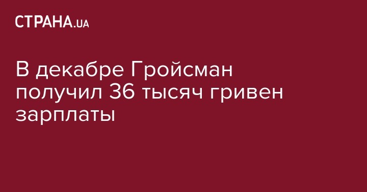 В декабре Гройсман получил 36 тысяч гривен зарплаты
