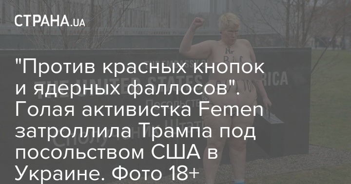 "Против красных кнопок и ядерных фаллосов". Голая активистка Femen затроллила Трампа под посольством США в Украине. Фото 18+