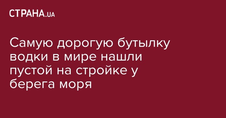 Самую дорогую бутылку водки в мире нашли пустой на стройке у берега моря