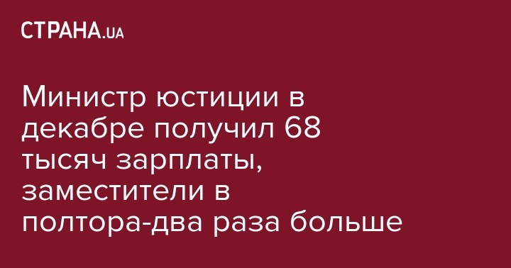 Зарплата первого заместителя министра Натальи Бернацкой (до замужества Севостьяновой) составила 162 363,42 гривны, заместителей Гии Гецадзе - 91 495,32 гривны, Сергея Петухова - 95 028,37 гривны, Ивана Лищины - 65 472,44 гривен, Елены Сукмановой - 66 070,78 гривны, Дениса Чернышова - 187 643,32 гривны, Сергея Шкляра - 68 024,14 гривны, госсекретаря Анны Буяджи (до замужества - Онищенко) - 748,5 гривны.