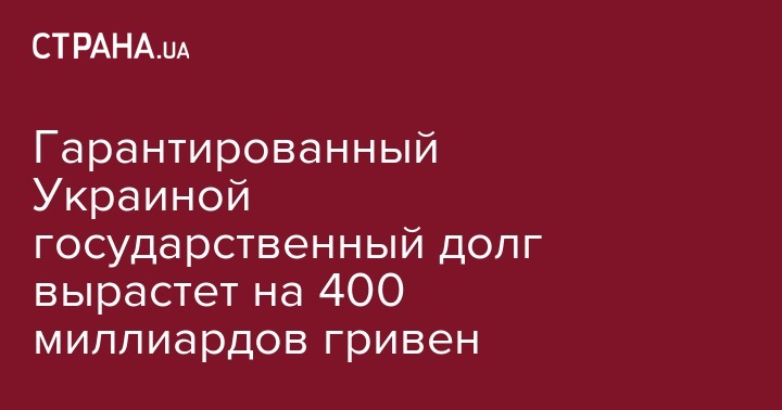 Гарантированный Украиной государственный долг вырастет на 400 миллиардов гривен