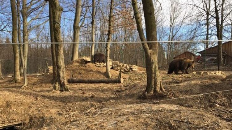"Если их выпустить, они будут ходить по ближним деревням и наносить убытки людям. Дина - самая старшая. Ей около 20 лет. Ее сын - Мир. Еще есть Надежда. Их так назвали, когда началась война, - с надеждой на мир. Маши - шесть. В спячку медведи не впадают из-за мягких зим. Даже в дикой природе теперь медведи не залегают ", - рассказал Бучко.