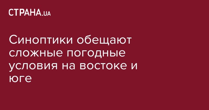 В Херсонской, Запорожской, Днепропетровской, Харьковской, Донецкой, Луганской областях местами сильный снег (на побережье мокрый снег), местами налипание мокрого снега. Гололед, усиление скорости ветра до 15-20 м/с и увеличения высоты снежного покрова до 20-30 см.