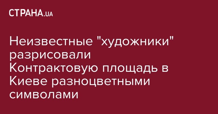 Неизвестные "художники" разрисовали Контрактовую площадь в Киеве разноцветными символами