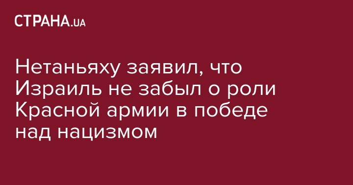 Израиль не забывает о роли Красной Армии в победе над нацизмом и призывает всех изо всех сил бороться с радикальными идеологиями. Об этом заявил премьер-министр Израиля Биньямин Нетаньяху в Еврейском музее и центре толерантности в Москве на памятных мероприятиях, посвященных международному Дню памяти жертв Холокоста и годовщине полного освобождения Ленинграда от фашистской блокады, передает ТАСС.