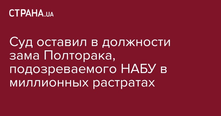 Суд оставил в должности зама Полторака, подозреваемого НАБУ в миллионных растратах
