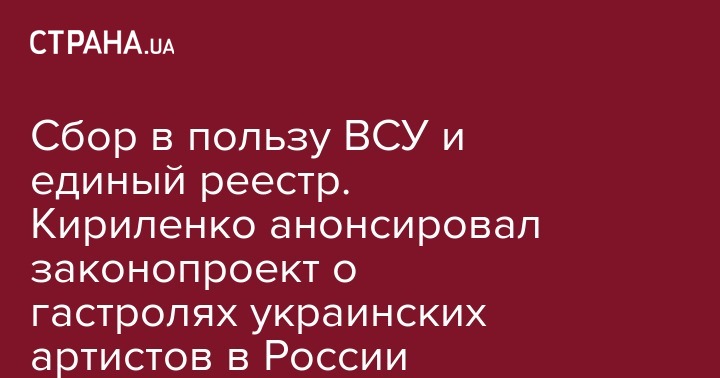 Сбор в пользу ВСУ и единый реестр. Кириленко анонсировал законопроект о гастролях украинских артистов в России