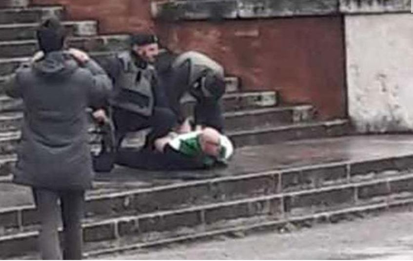 Увидев полицейских мужчина выбежал из машины по направлению к памятнику, где и был задержан. До того, как его схватили карабинеры, он успел взобраться на памятник и "кинуть зигу".