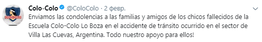 "Мы посылаем братские объятия и наши соболезнования их семьям, друзьям. Официальная делегация от клуба находится на пути к месту трагедии. На месте будем решать вопрос помощи семьям пострадавших", – говорится в сообщении.