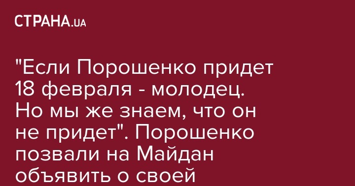 "Наше главное требование - отставка Порошенко. Мы вызываем гражданина Порошенко на майдан 18 февраля для оглашения решения об отставке. В этот день мы выходим на Майдан в Киеве и во всех городах Украины", - зачитал Деревянко.