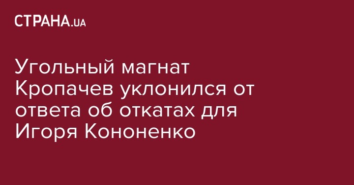 Угольный магнат Кропачев уклонился от ответа об откатах для Игоря Кононенко