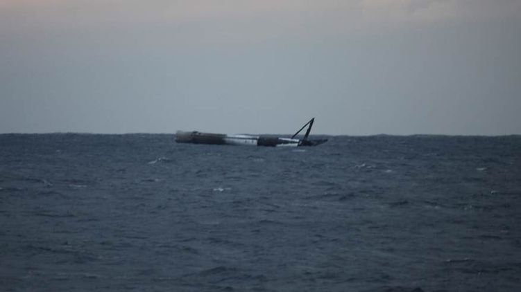 Отмечается, что в самой Space X не знали, как вернуть уцелевшую первую степень на побережье и собирались использовать буксир, но ускоритель, чья конструкция не предназначена для долгих часов плавания, начал разрушаться.