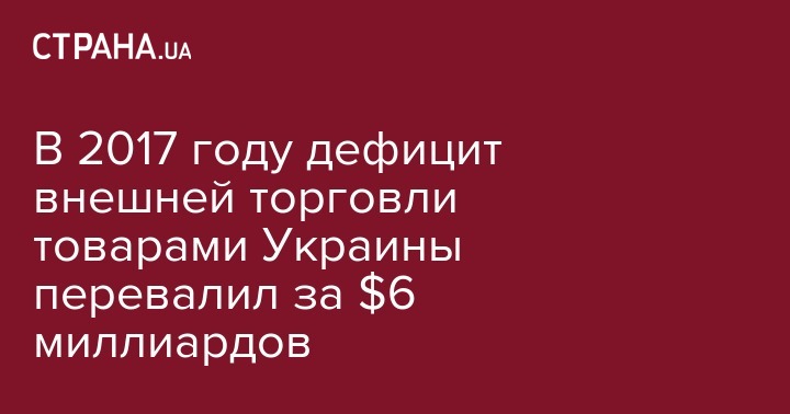 В 2017 году дефицит внешней торговли товарами Украины увеличился в 2,2 раза по сравнению с 2016 годом. Этот показатель достиг -$6,332 млрд, а в 2016 году он составлял –$2,888 млрд.