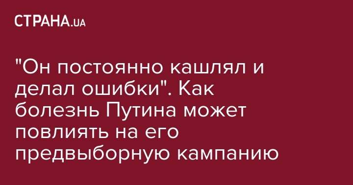 Состояние здоровья российского президента Владимира Путина может негативно отразиться на его предвыборной кампании.
