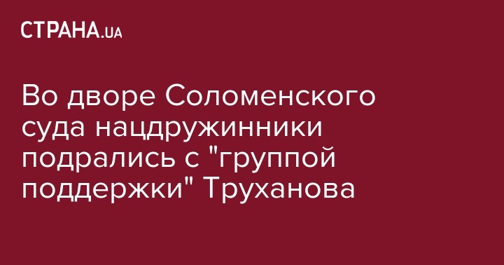 Мужчины в фоме нацдружин вынудили группу поддержки Труханова покинуть двор Соломенского райсуда и выгнали их за ворота. Потасовка происходила под колокольный звон, который раздавался из ближайшего к суду храма.