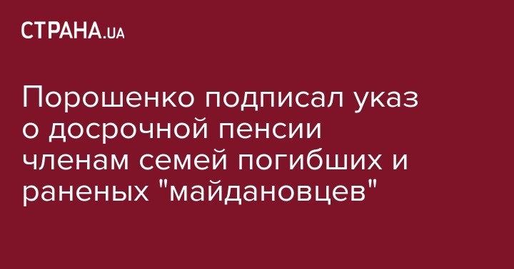 Президент Украины Петр Порошенко подписал закон о назначении досрочной пенсии членам семей лиц, погибших во время участия в Революции Достоинства.