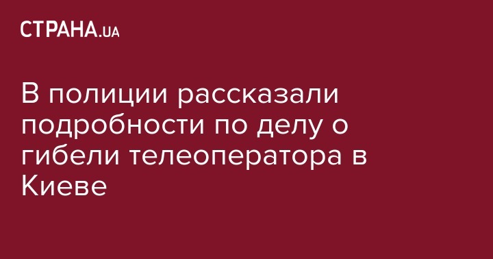 Полиция Киева начала расследование по факту гибели оператора телеканала "Киев" из-за падения из окна многоэтажного дома в Соломенском районе Киева. Об этом на своей странице в Facebook сообщила пресс-секретарь Главного управления Национальной полиции в Киеве Оксана Блищик.