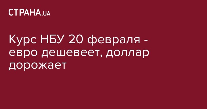 Во вторник, 20 февраля, Нацбанк установил официальный курс гривны по отношению к иностранным валютам. По сравнению с предыдущим рабочим днем, евро подешевел, а доллар незначительно вырос.