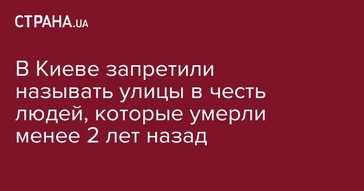 В Киеве запретили называть улицы в честь людей, которые умерли не менее двух лет назад. Решение сегодня приняли депутаты Киевсовета, передают "Украинские новости".