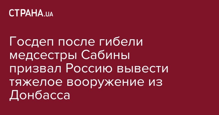 Государственный департамент США после гибели украинского военного медика Сабины Галицкой на Донбассе призвал Россию вывести войска и тяжелое вооружение из Восточной Украины.
