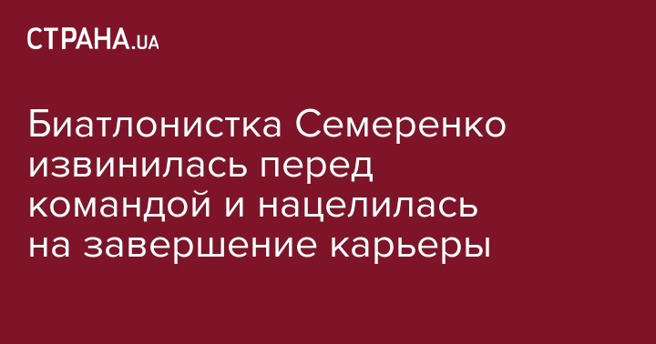 Украинская биатлонистка Валентина Семеренко заявила, что не жалеет о критике тренеров по выбору участников олимпийской эстафеты в Пхенчхан, и извинилась перед командой. Кроме того, она заявила о возможном прекращении карьеры, передает isport.