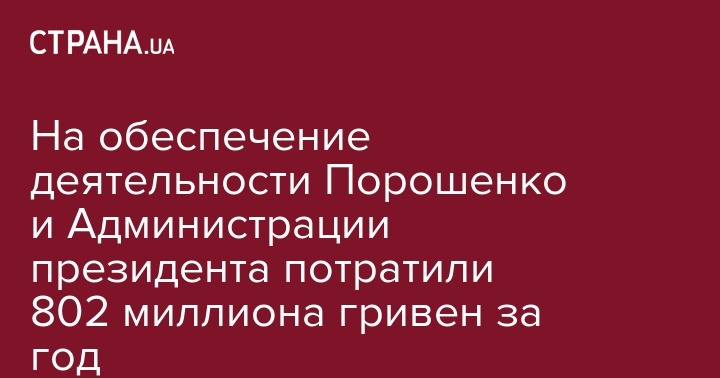 Расходы на обслуживание и организационное, информационно-аналитическое, материально-техническое обеспечение деятельности президента и его Администрации в прошлом году составили 802 млн 328 тыс. грн средств бюджета.